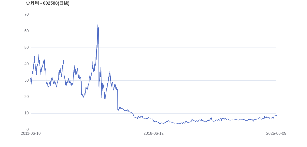 从上市首日至今,史丹利的市值实现了1.50倍的增长。2015年6月12日,史丹利的市值巅峰达到227.47亿元,股价也顺应升至39.06元。而至6月9日收盘,史丹利的股价为8.78元,市值为101.14亿元,相比峰值时期市值减少126.33亿元,市值蒸发了55.54%。